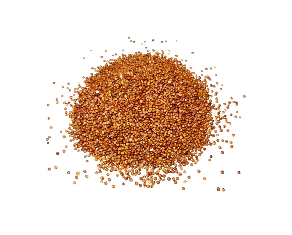 Rød quinoa er et næringsrikt frø med en mild, nøtteaktig smak og en litt fastere konsistens enn vanlig hvit quinoa. Den passer perfekt både i varme retter og i friske salater.